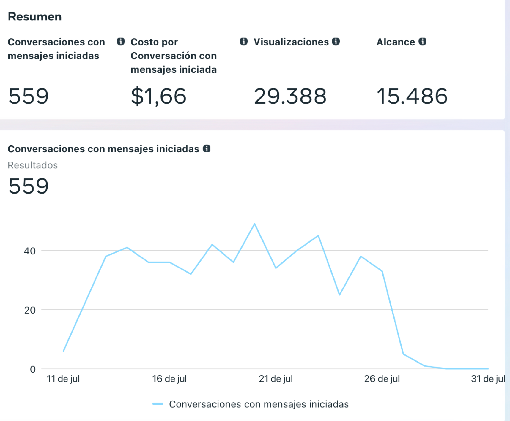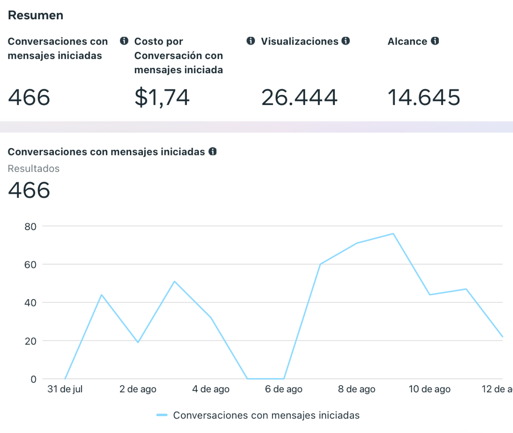 Costo Por Conversación Meta: El diseño creativo de los anuncios y la correcta optimización del presupuesto demuestran que la empresa logró generar interacciones reales y conversaciones de valor con clientes a un costo reducido.