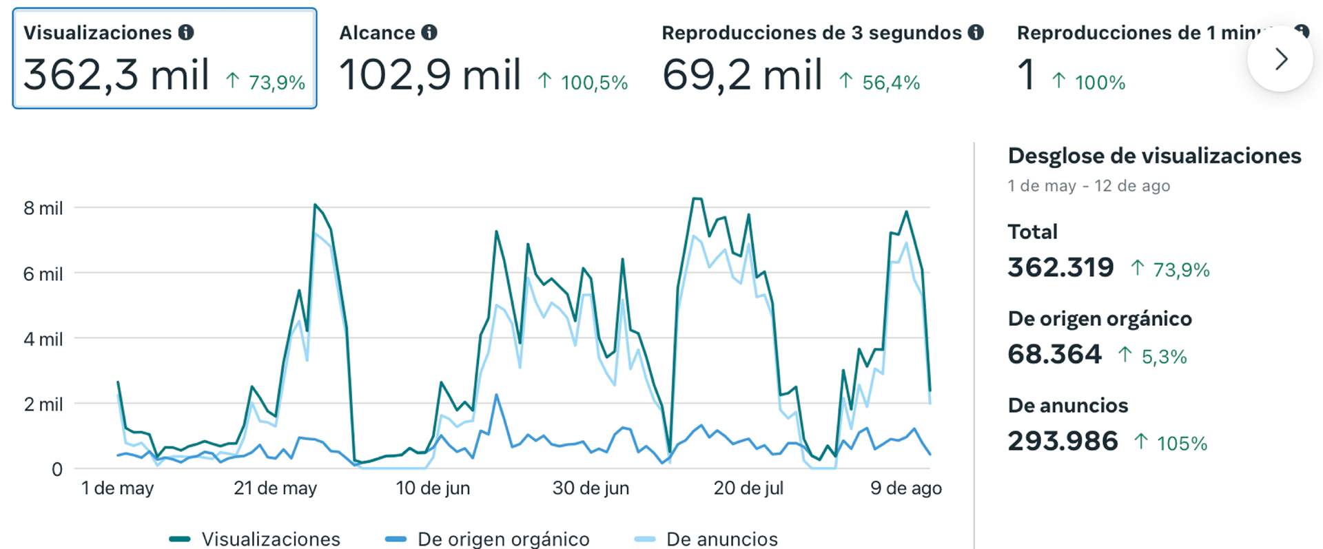 La estrategia combinada de Google Ads, Facebook e Instagram Ads generó una expansión sostenida en el alcance y la interacción de marca.
