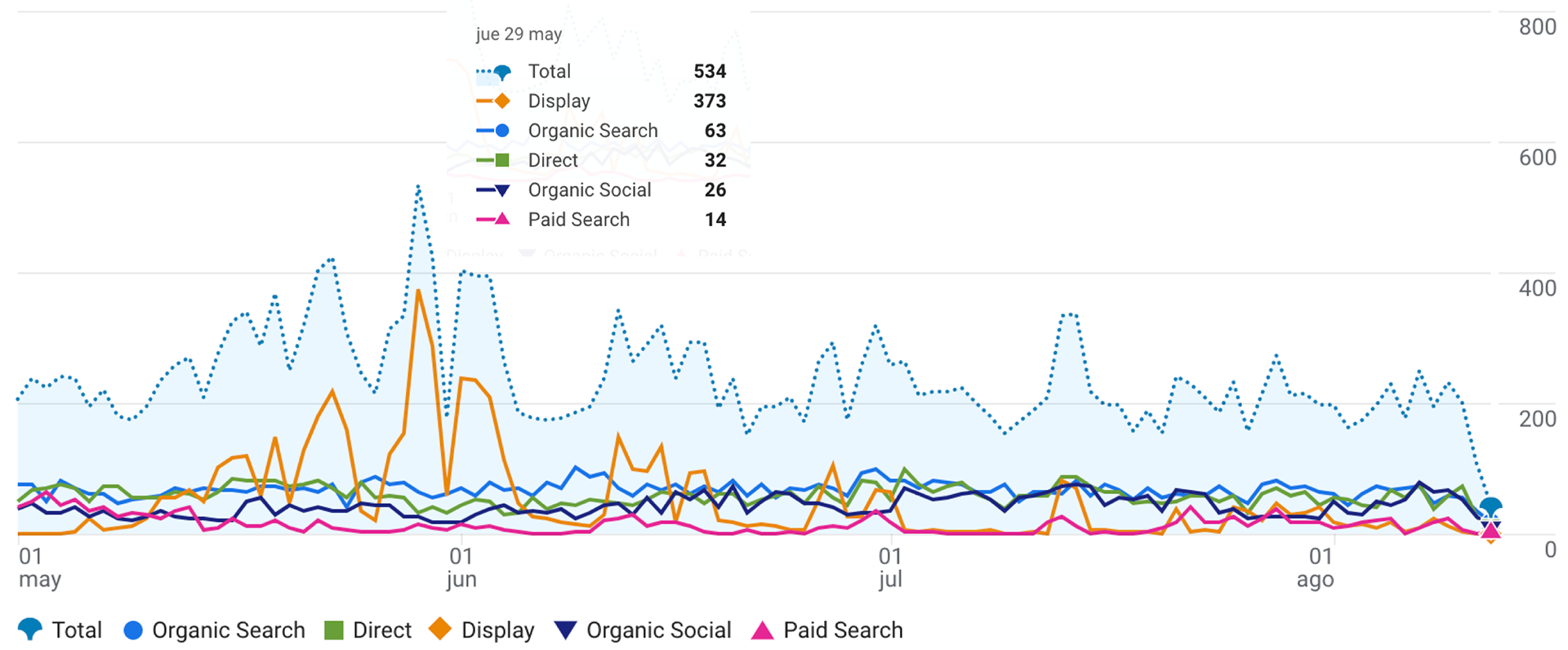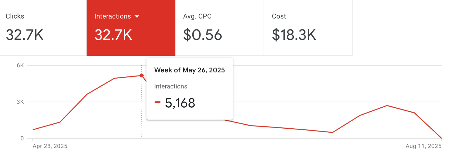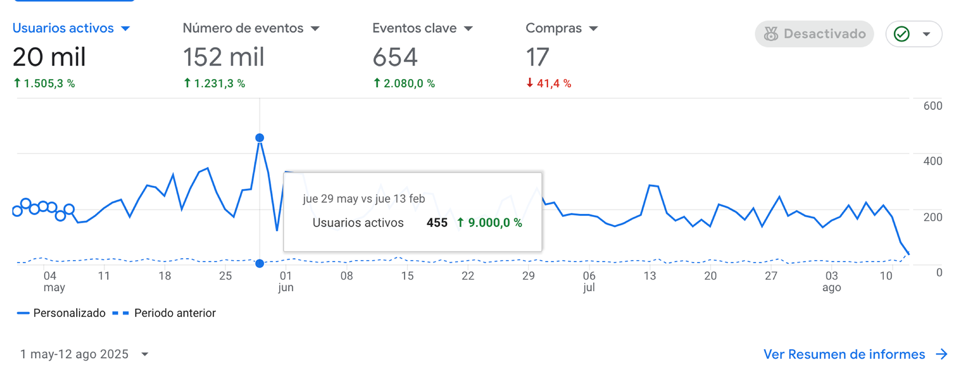 CPC Google Ads: Gracias a una combinación de palabras clave precisas, anuncios atractivos y una gestión constante del rendimiento, uno de los resultados más destacados de las campañas publicitarias fue la obtención de un costo por clic (CPC) promedio bajo, reflejo directo de una estrategia de segmentación bien ejecutada.